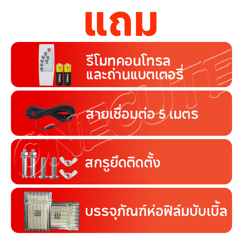 แถม✨อุปกรณ์เสริมไฟโซล่าเซลล์ รีโมทคอนโทรล แบตเตอรี่ สายเชื่อมต่อ 5 เมตร สกรูยึด ไฟโซล่าเซลล์