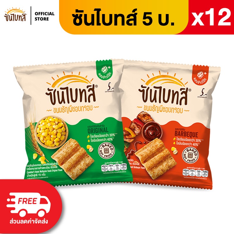 ลูกค้าอาจจะได้รับสินค้าที่มีเเพ็คเกจจิ้งรุ่นเดิม ขึ้นอยู่กับล็อตสินค้า ณ วันดำเนินการ ซึ่งไม่ได้ส่งผลต่อรสชาติของสินค้าแต่อย่างใด ต้องขออภัยในความไม่สะดวกมา ณ ที่นี้ซันไบทส์ขนมธัญพืชอบกรอบ ผลิตจากธัญพืชที่มีคุณประโยชน์