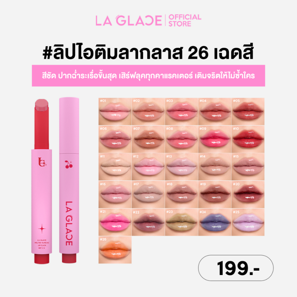 LA GLACE MELTED SUNDAE LIP CLICK | ลิปไอติมลากลาส สีระเรื่อ & ปากฉ่ำขั้นสุด ลิปกด ลิปฉ่ำ ราคาล่าสุด ฿199 | Best Sellers | Best Sellers