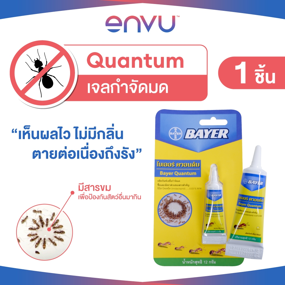 ควอนตั้ม ใช้กำจัดมดโดยเฉพาะ เห็นผลภายใน 24 ชั่วโมง ด้วยประสิทธิภาพการตายต่อเนื่องถึงรัง ด้วยเทคโนโลยี HVL ช่วยให้ ควอนตั้มยังคงสภาพ ดึงดูดและป้องกันกำจัดมดได้ยาวนานขึ้น ใช้งานง่าย สะดวก ไม่ฟุ้งกระจาย ลดความเสี่ยงในการปนเปื้อนสารเคมี จากการฉีดพ่นแบบเดิมๆ และมีการใส่สารขมเพื่อป้องกันการกินจากสัตว์อื่นที่ไม่ใช่เป้าหมาย